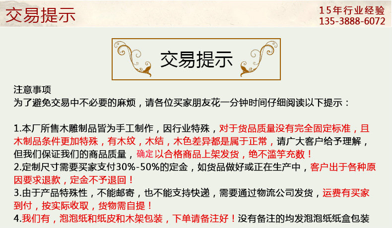 6.我们发货会尽量包装好,到货需验货再签收,如有损坏直接拒签,小摩擦磕碰不作质量问题处理,请多理解!