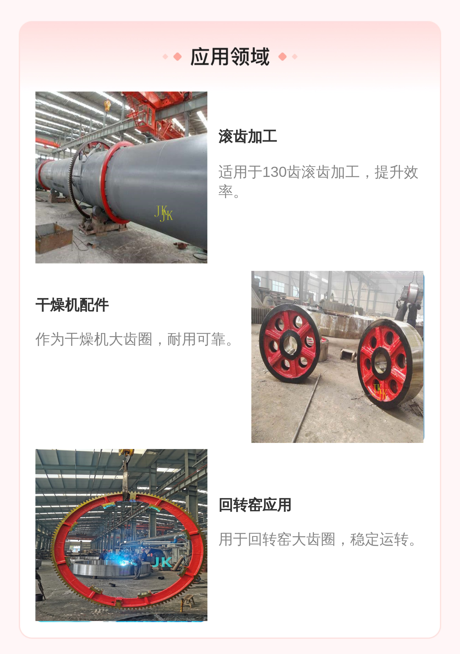 用于130齿滚齿加工干燥机大齿圈,回转窑大齿圈 |