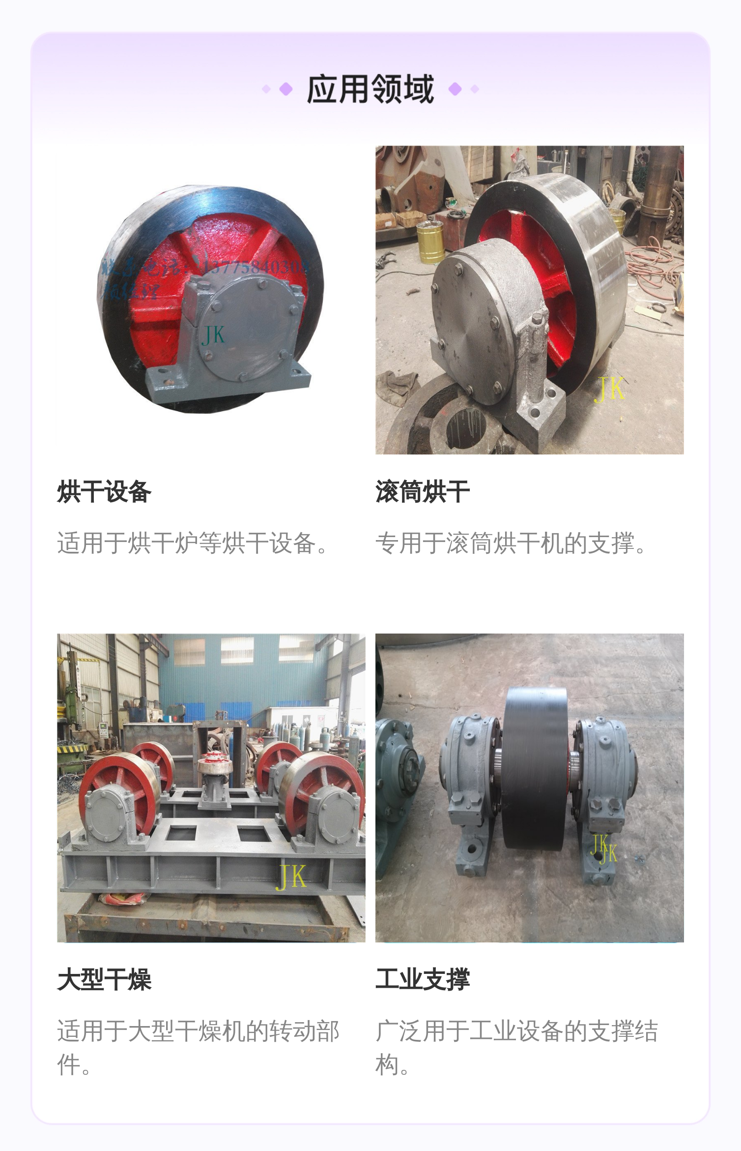 用于烘干炉、滚筒烘干机、大型干燥机的支撑与转动 |