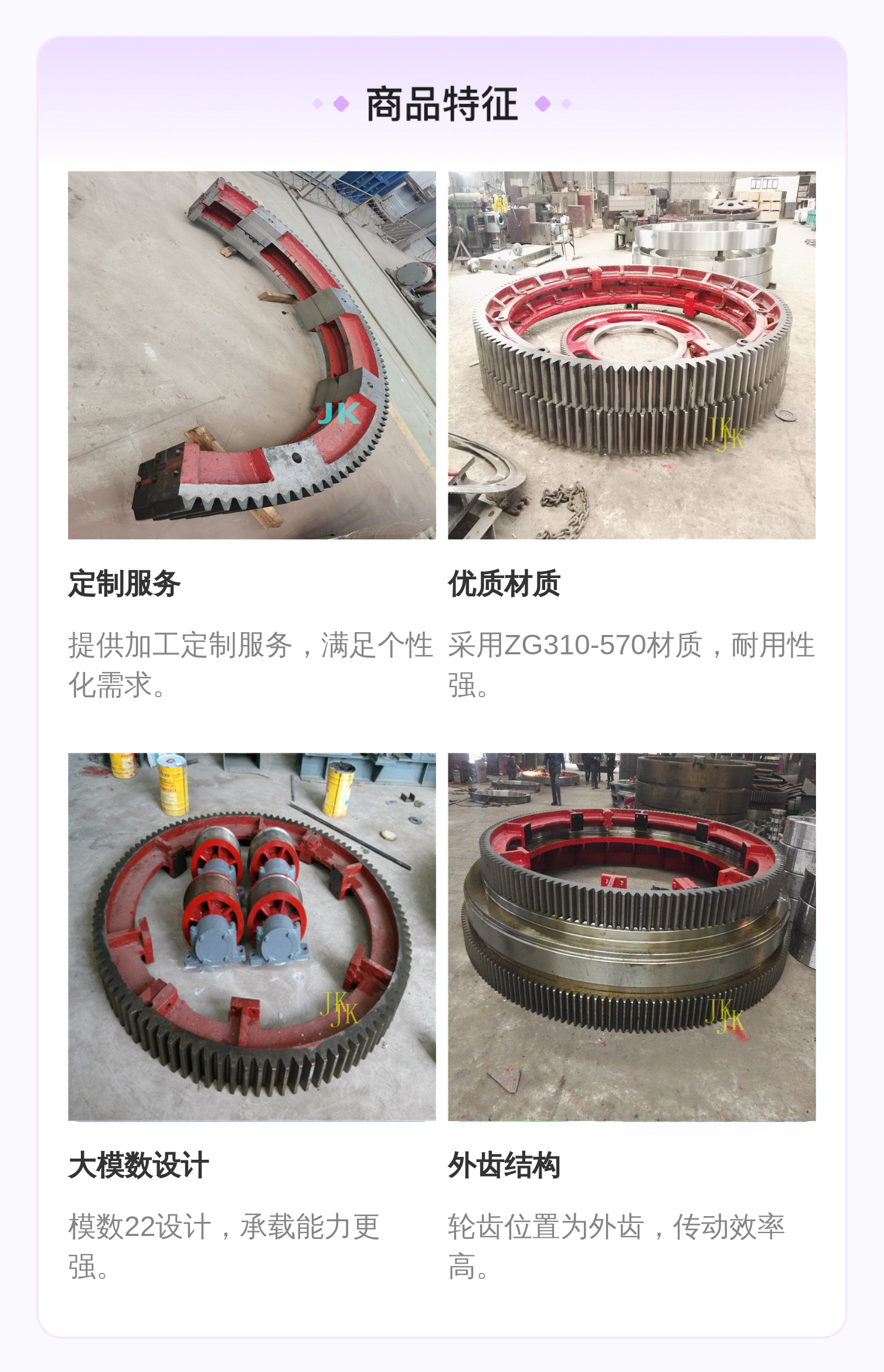 建奎2200型2.2米烘干机大齿轮大齿圈材质ZG310-570模数22 |