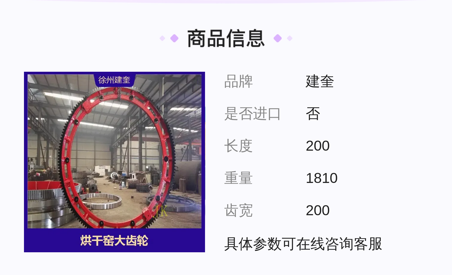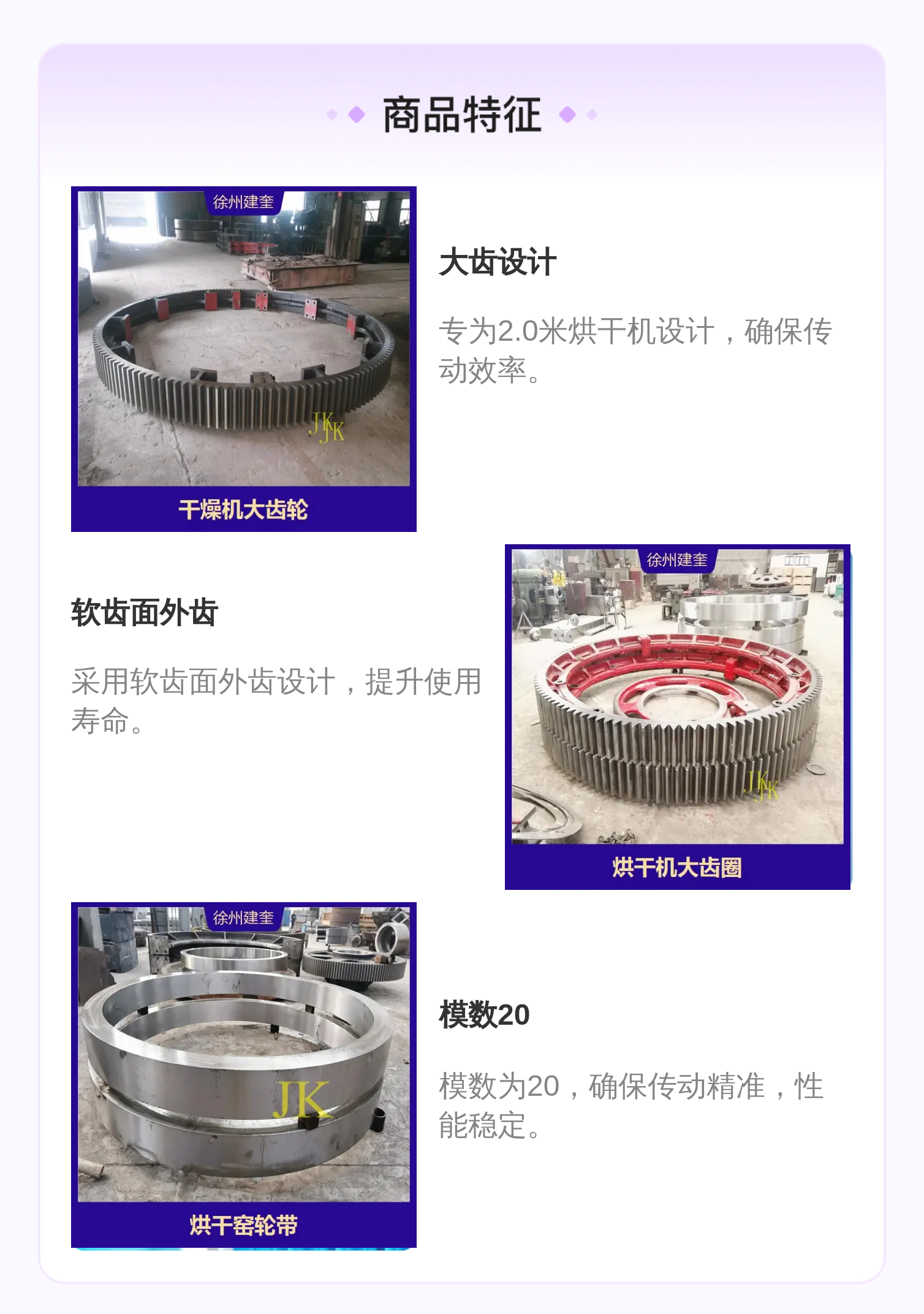 建奎200cm烘干机大齿轮,软齿面外齿,20模数,适用于2.0米干燥机大齿圈 |