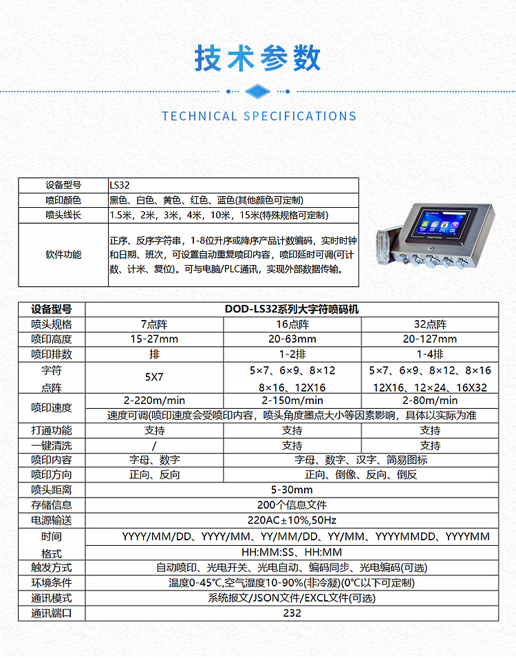 自动喷印、光电开关、光电自动、编码同步、光电编码(可选) |