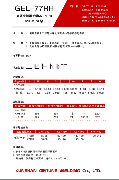 国产E10015-G高强度钢焊条2.5-5.0 另外本公司还代理美国万能焊条Magna、瑞士卡斯特林焊条Castolin、英国曼彻特焊条METROD、奥地利伯乐焊条BOHLER、德国法奥迪焊条VAUTID、美国泰可乐焊条TECHALLOY、法国思乐达焊条Selectarc、司太利钴基焊条Stellitecopyright 瑞典伊萨焊条日本神钢焊条 法国沙福焊条 阿克泰克焊材等。欢迎订购我们还将提供技术支持国产 E10015-G高强度钢焊条2.5-5.0E10015-G