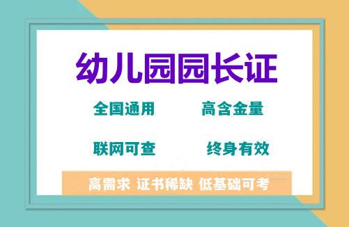 幼儿园园长,是我国幼教领域的稀缺精英人才 , 当前一个*的职业园长年薪不少于30万,甚至达到100万,而我国90%以上幼儿园园长年薪还不到5万, 伴随着我国幼教事业的发展,社会对幼儿园品质要求越来越高,传统的园长已经满足不了发展需求,园长迫切需要向职业园长角色转变,拥有广阔的发展前景和未来发展机会。园长资格证书是园长上岗的*有效证书。目前,国 家严把质量关要求所有园所园长必须做到持证上岗。