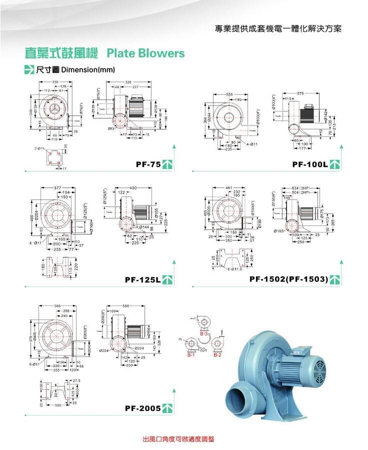 5. 尘埃防护:有大量尘埃,粉立体或纤维等场所应避免使用,如必需在此类场合使用时,请加装过滤器,并定期清理附在滤网及鼓风机内部之尘埃。