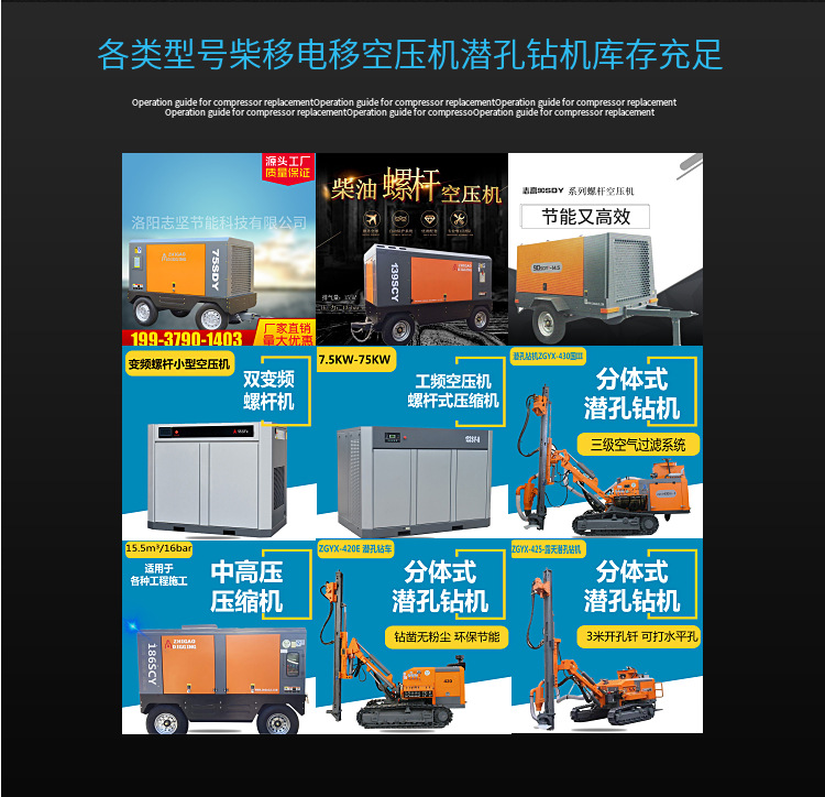 洛阳志坚节能科技有限公司 经销批发的螺杆空压机、潜孔钻机、风镐畅销消费者市场,在消费者当中享有较高的地位,公司与多家零售商和代理商建立了长期稳定的合作关系。洛阳志坚节能科技有限公司经销的螺杆空压机、潜孔钻机、风镐品种齐全、价格合理。洛阳志坚节能科技有限公司实力雄厚,重信用、守合同、保证产品质量,以多品种经营特色和薄利多销的原则,赢得了广大客户的信任。