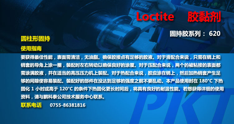 乐泰®产品620 是一种单组分,厌氧型固持胶,用于固持圆柱形配合件。在与空气隔绝的r