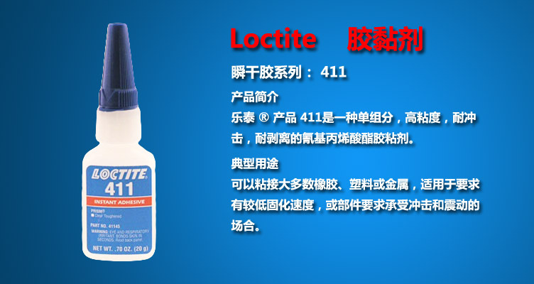 乐泰 ? 产品 411是一种单组分,高粘度,耐冲击,耐剥离的氰基丙烯酸酯胶粘剂。