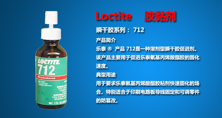乐泰®产品712 是一种溶剂型瞬干胶促进剂。该产品主要用于促进乐泰氰基丙烯酸酯胶的固r