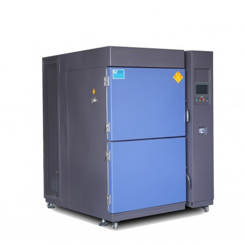 2、冷热冲击箱分为高温箱,低温箱,测试箱三部分,采用独特的断热结构及蓄热蓄冷效果,试验时待测物完全静止,应用冷热风路切换方式将冷,热温度导入测试区实现冷热冲击测试目的。