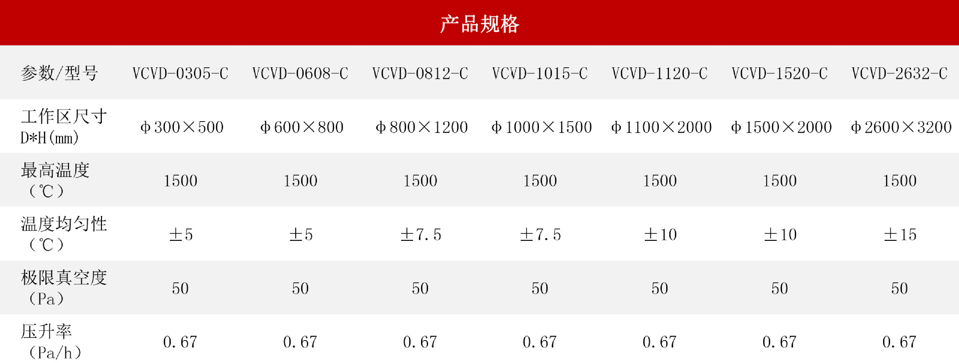 立式化学气相沉积炉(沉积炭)可用于以碳氢气体(如C3H8等)为碳源的材料表面或基体等温CVD/CVI