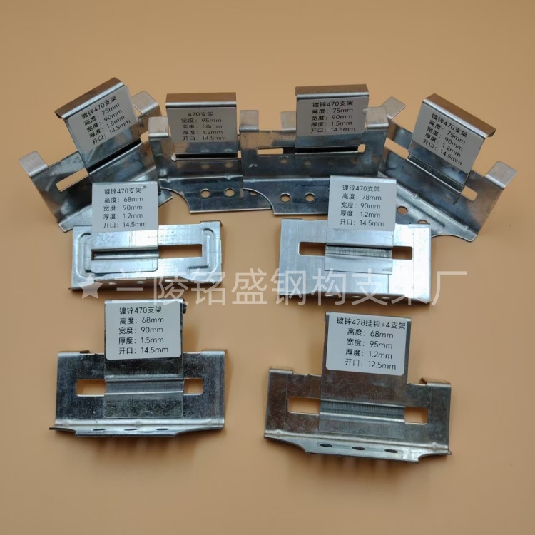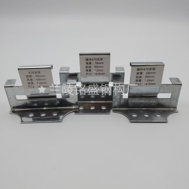 彩钢瓦470支架是一款为彩钢瓦安装设计的固定配件,广泛应用于工业厂房、仓库、农业大棚等建筑的屋顶和墙面施工。其设计注重实用性、耐用性和安装便捷性,能够满足不同场景的需求,是彩钢瓦安装的选择之一。通常采用较好的钢材或镀锌材料制成,具有良好的抗压、抗拉和抗腐蚀性能,在恶劣环境下尽量长期使用。