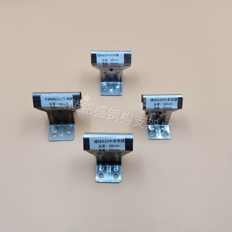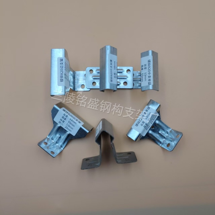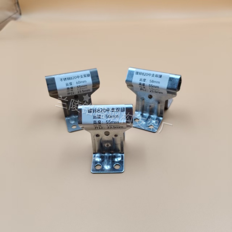 中支分为单腿跟双腿2种,常规规格55高58宽,厚度1.0 1.2 1.5三种,开口常规中支为23.5边支为20,另有各种大小开口基本满足大多客户需求,加高有70 75 80 90 100 115 125 150,保温棉厚度不等,容重不等,所需支架高度也不一样,材质主要是热镀锌,201 304不锈钢材质。量大优惠,特殊尺寸量大基本可以开模具定做。
