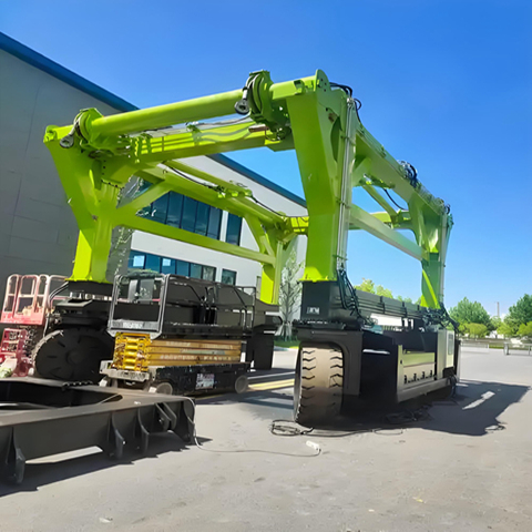 重型跨运车:用于承载 45 英尺超长集装箱或超重集装箱(载重 50 吨以上),车身结构更强,适合特殊货物运输(如重型机械、大型设备集装箱)。