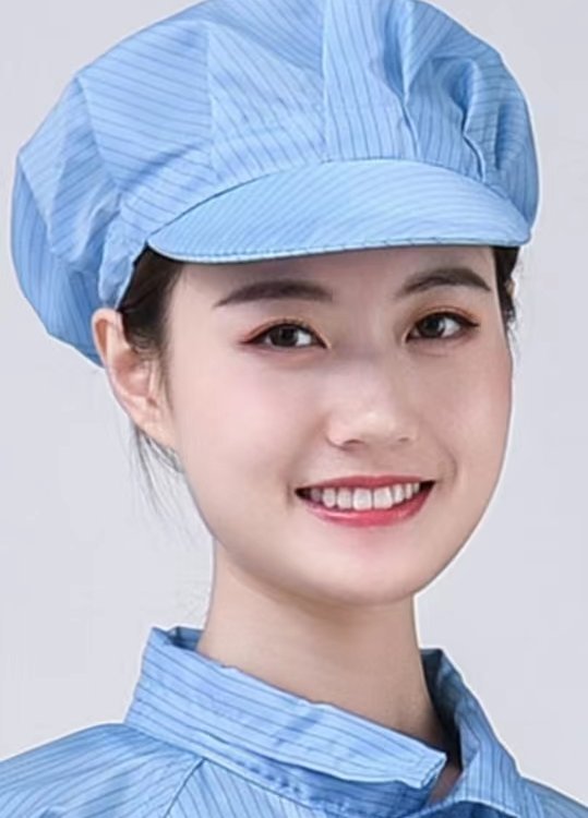 防静电帽又叫防尘帽,鸭舌帽,小工帽,女工帽。
