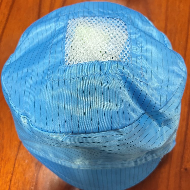 防静电帽颜色主要为白色和蓝色。头顶主要分为不开窗和开窗二种。