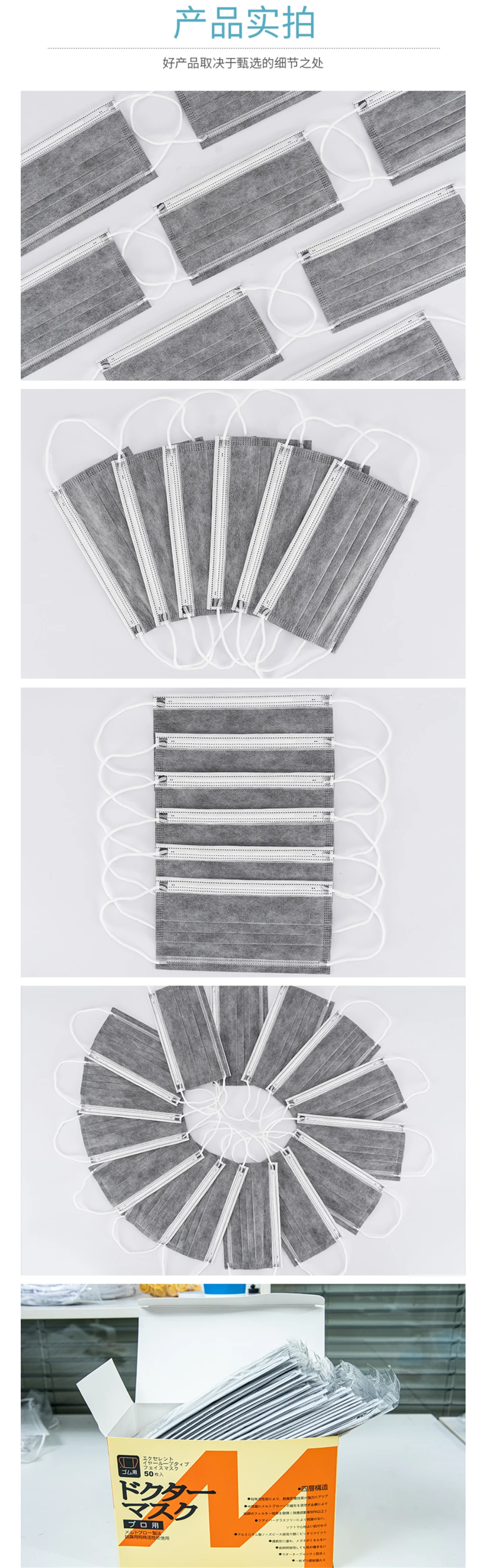 产品特点:活性炭、抑菌杀菌、独立包装、活性炭口罩含有活性炭层,活性炭层含有大量活性炭,能有效吸附空气中的游离氧、酚、硫和其它有机污染物,添加碳能达到过滤除杂去异味的效果
