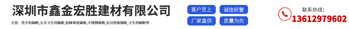 深圳市鑫金宏胜建材有限公司是一家*从事设计、生产、安装卫生间隔断/洗手间隔断/不锈钢隔断/商业展台等产品的综合性*公司。我公司一直秉承“用*筑造高尚品质”的经营理念,以良好的信誉、科学的管理、人性化的设计、真诚的服务赢得了广大客户的一致好评。深圳卫生间隔断新颖,简约,舒适,高雅,时尚,色彩丰富,安装快捷,紧跟世界潮流,广泛应用于学校,医院,机场,宾馆,商场,工厂,办公大楼等公共场所,成为目前产品全,市场占有率高,客户信誉度好,行业具影响力品牌。我们将一如既...
