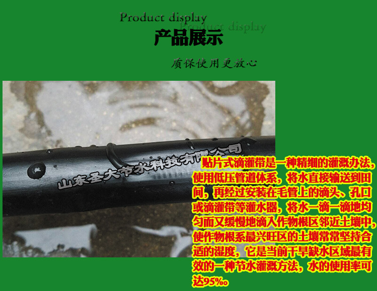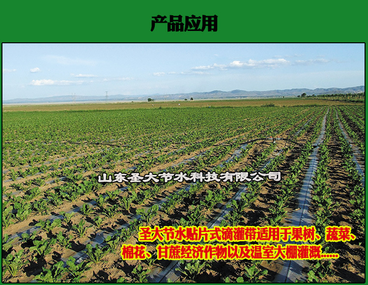 圣大节水贴片式滴灌带适用于果树、蔬菜、 棉花、甘蔗经济作物以及温室大棚灌溉......
