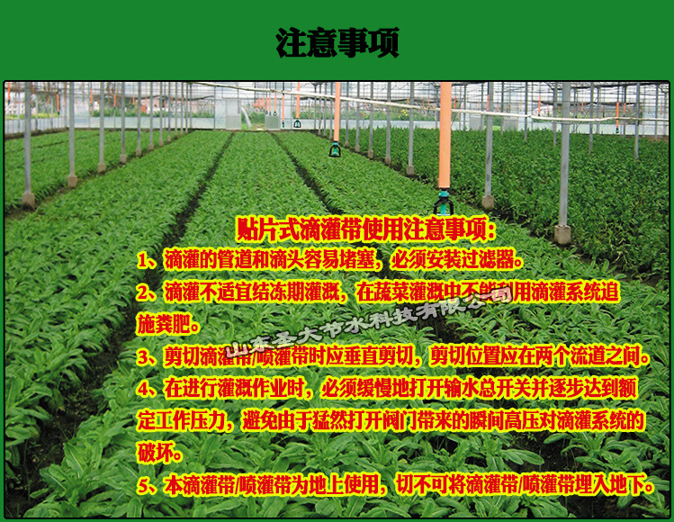 圣大节水贴片式滴灌带使用注意事项: