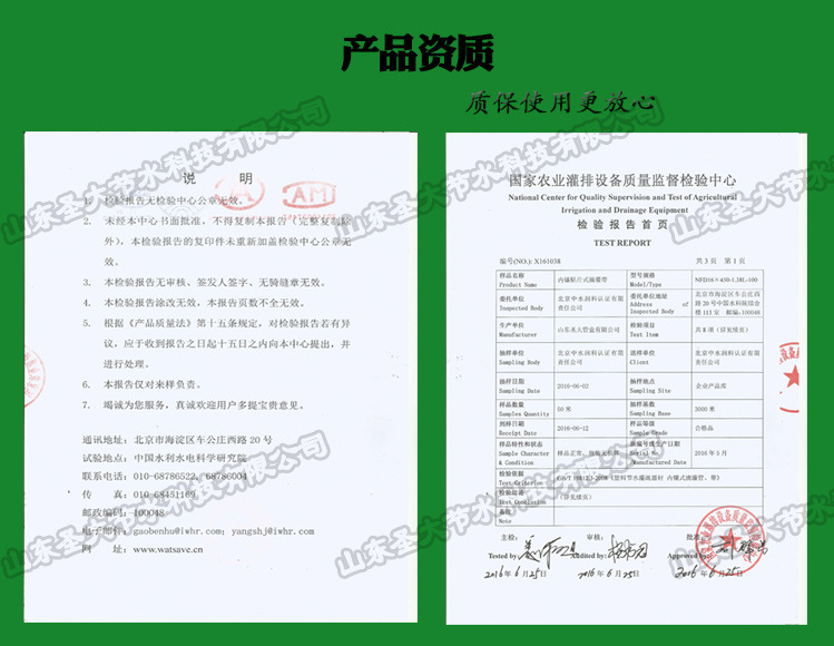 圣大管业生产的贴片滴灌带产品检验报告: