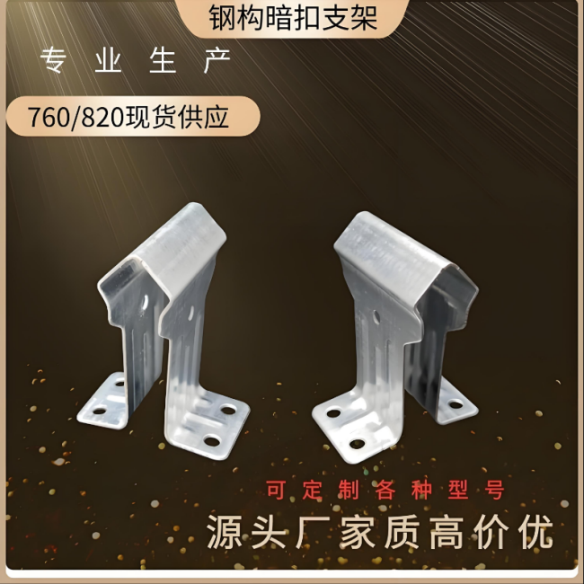 角驰760支架是一款专为角驰760型彩钢板设计的隐藏式固定支架,主要用于工业建筑、仓储设施等金属屋面系统的安装,具备高承载力、耐腐蚀性和安装便捷性。