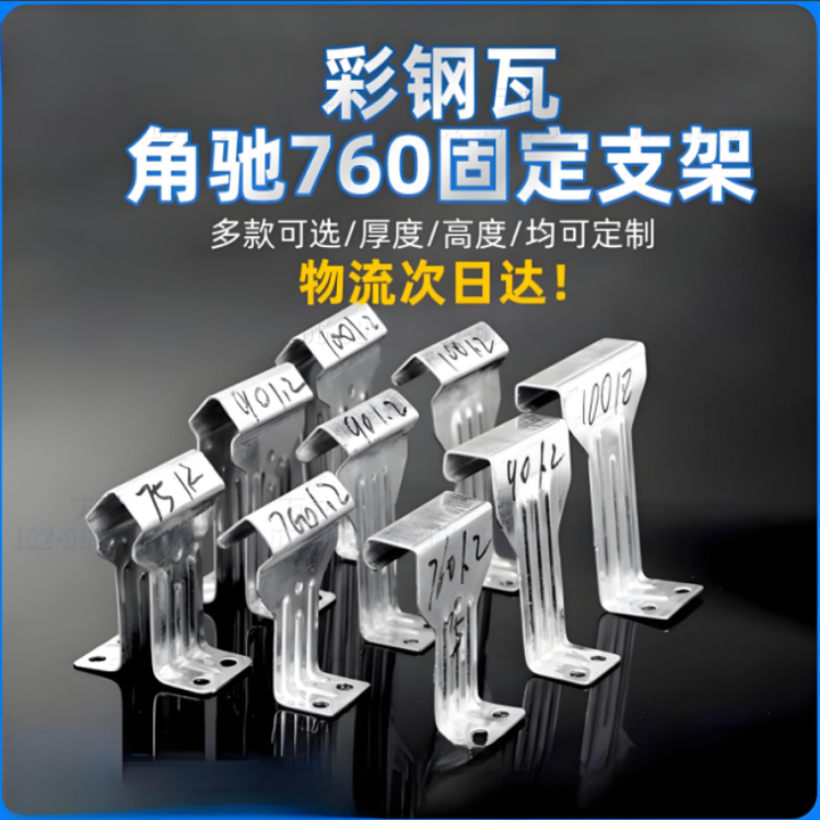 彩钢瓦760支架是用于固定彩钢瓦屋顶的专用支架,通常采用镀锌材质,具有防锈、耐腐蚀、耐候性强的特点,适用于各种建筑屋顶的安装。以下是关于彩钢瓦760支架的一些信息及厂家供应的相关内容: