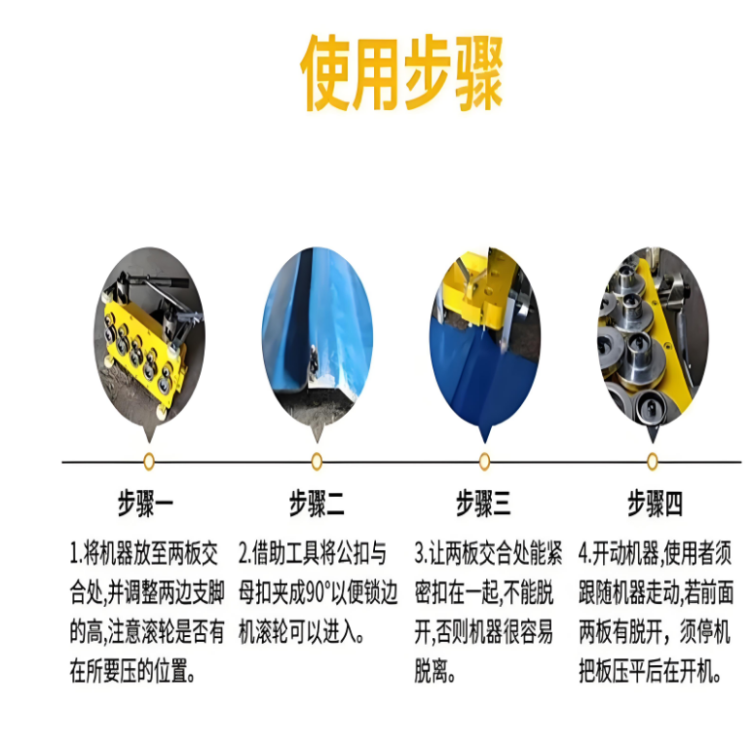 选择合适的设备:根据彩钢瓦的厚度和施工需求,选择合适的电动锁边机型号。