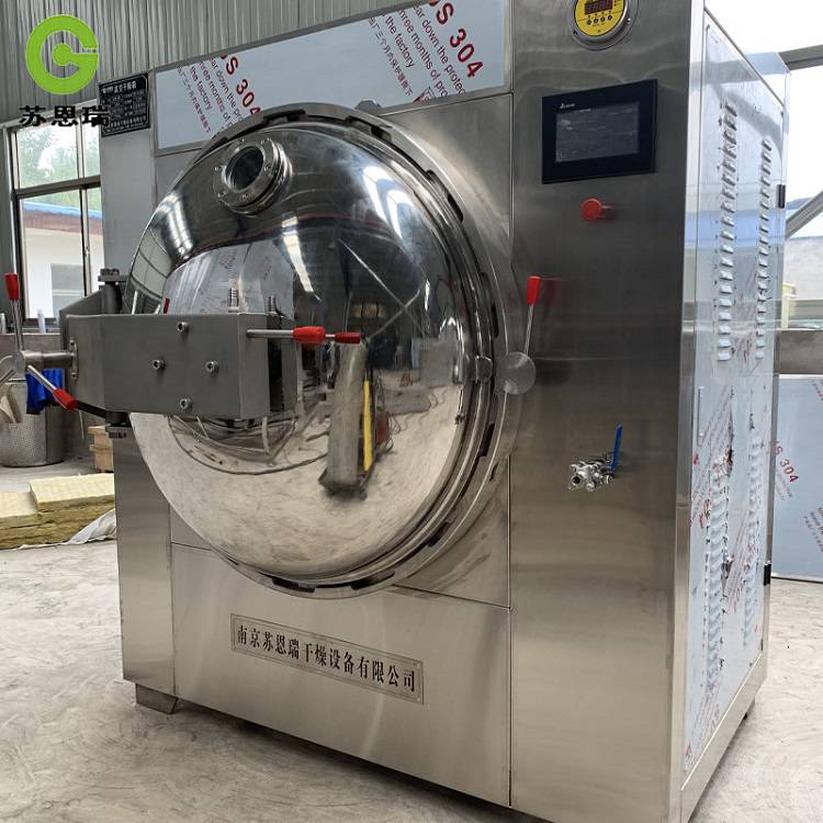 设备外壳采用不锈钢板数控机床加工成型,外壳表面进行磨砂处理:内胆为SUS304不锈钢板。电视监控,可清晰观察干燥全过程,避免干燥过程中泡沫过多的浸膏出现翻盘,切换监控位置可从不同角度观察浸膏情况,控制部分设在设备右侧,人机界面PLC控制,操作方便,简单, 易于维护。