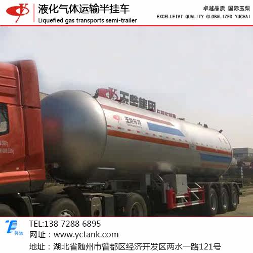 2、罐体部分:运输介质:丙烷。罐体有效容积为59.05立方,罐体部分参照GB-150《钢制压力容器》,及移动式压力容器安全技术监察规程、企业标准、设计图纸执行。严格按蓝图生产。附件:单出液、双侧装卸、双阀门箱、单工具箱、检修人孔、安全阀、液位计、温度计、压力表、紧急切断阀(液压式)。出厂前罐体用氮气置换空气、保压。