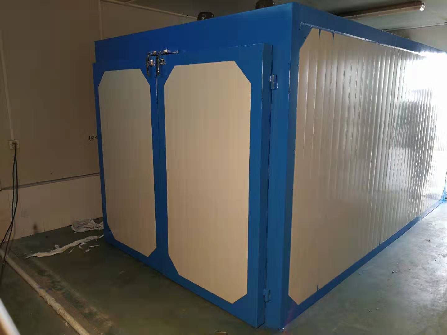 烘干房采用大直径风轮循环形式,因此具有循环风量大、热量流通均匀等特点。适用于各行业或需要烘烤面积大或数量多的产品,如石材板行业,石膏板业,电镀业、电子业、合金饰品、塑胶定型等烘干、脱水,但不适用于带强挥发性、易燃易爆等物品,以免引起爆炸。 本品分水平对流式和上下对流式两种。工作室较小的采用水平对流式,发热部分在上部,工作室较大的则采用上下对流式,发热部分在两侧。电机安装在上部或后部,通过带动风轮将热量流通到工作室,如此循环。