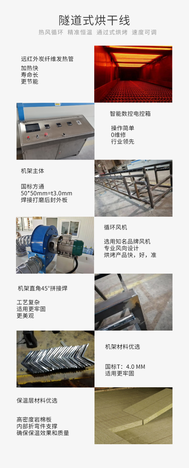 佛山重诚机械全自动多层网带式烘干机:可根据用户的需要设计生产,长度可3-60米,层数可1-15层,温度可达到250度。加热方式:颗粒加热,电加热,气加热,热风加热,可实现温度的自动控制和手动控制,传动速度可实现无级调速。产品适应于段状,片状,条状多种形状产品的烘干,脱水,固化。