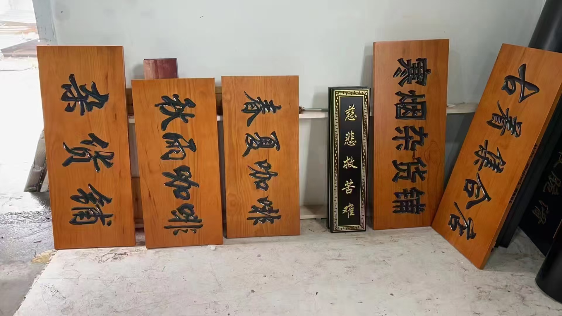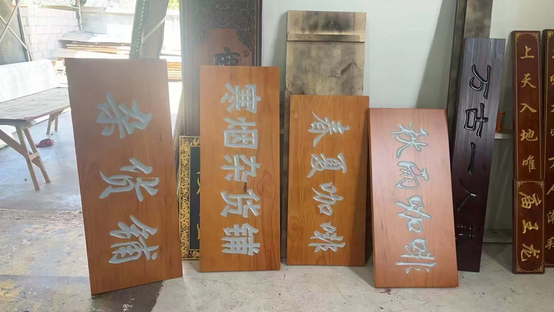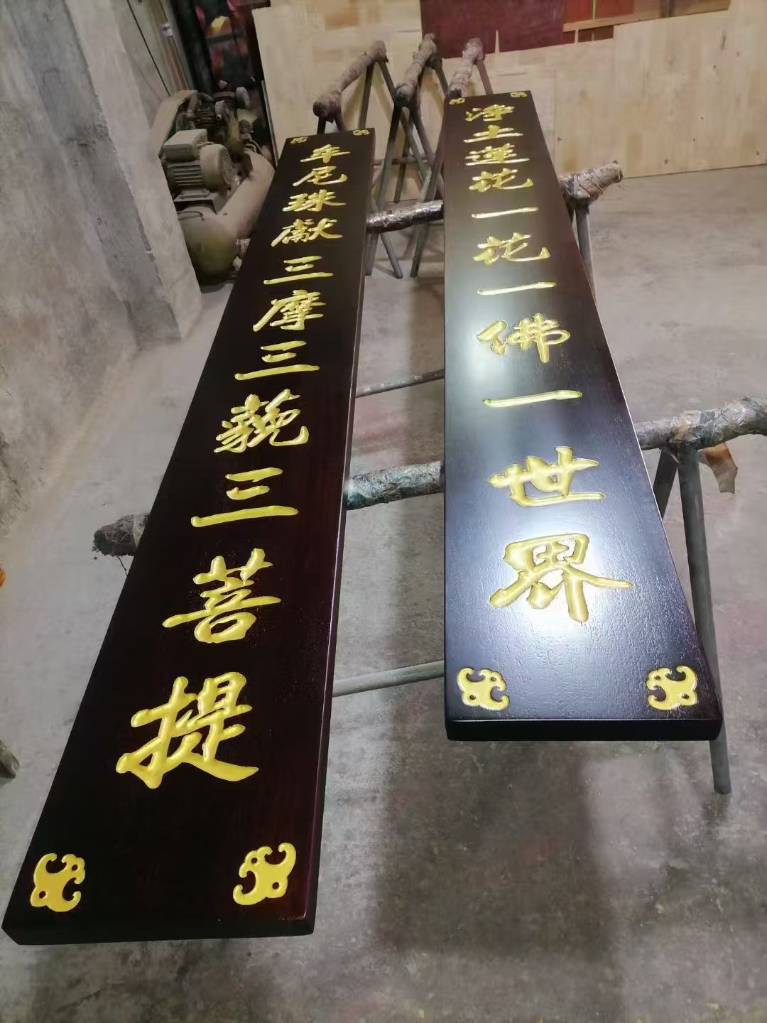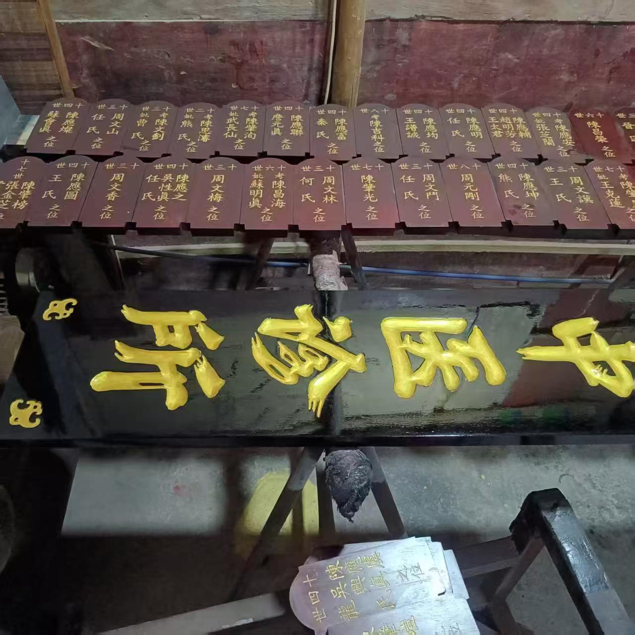 我们选用整块老料实木,材质坚硬耐用,纹理自然大气,不掺假、不拼接,做工扎实。从雕刻、描金、上漆到成品,全是老师傅手工制作,字体苍劲有力,楹联对仗工整,端庄大气,一挂上去,祠堂立马庄严气派,尽显宗族底蕴。