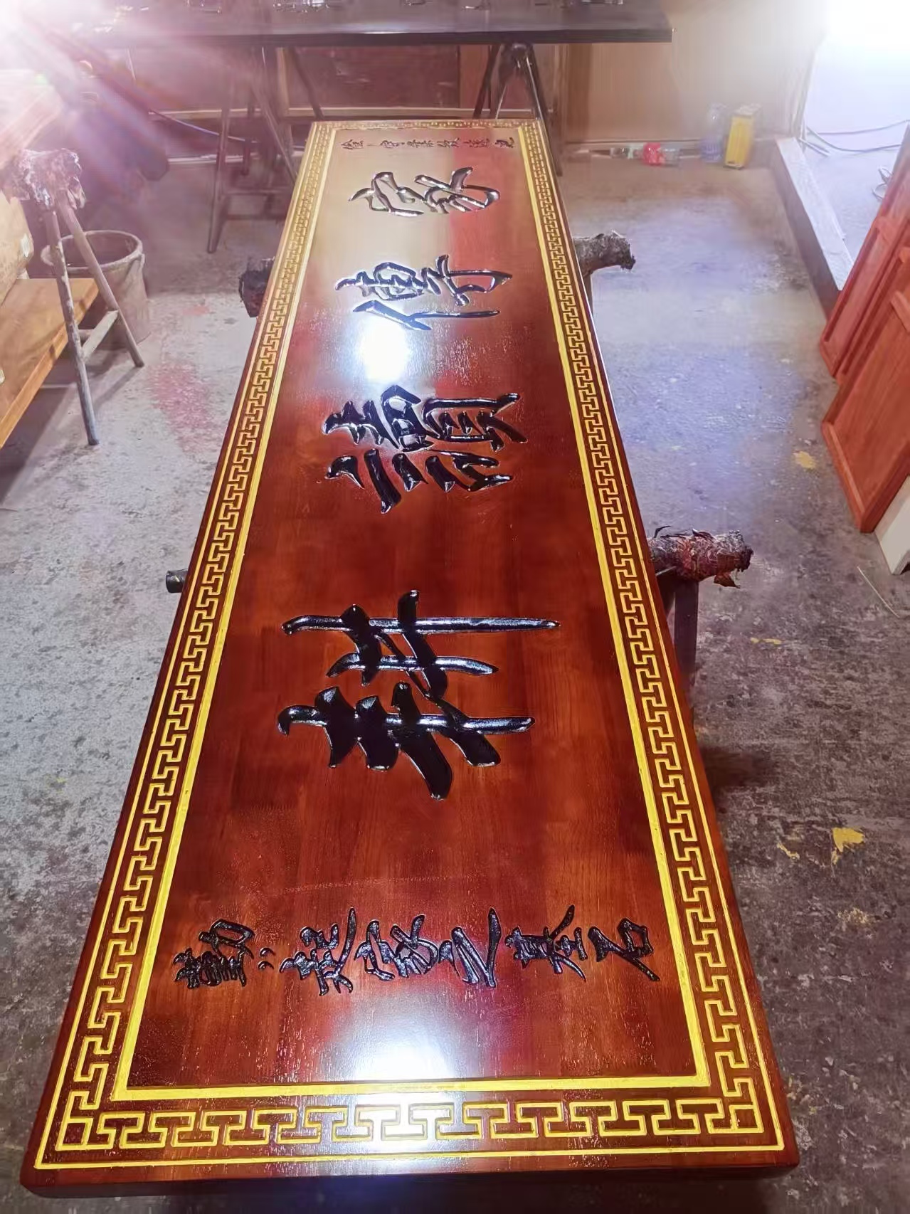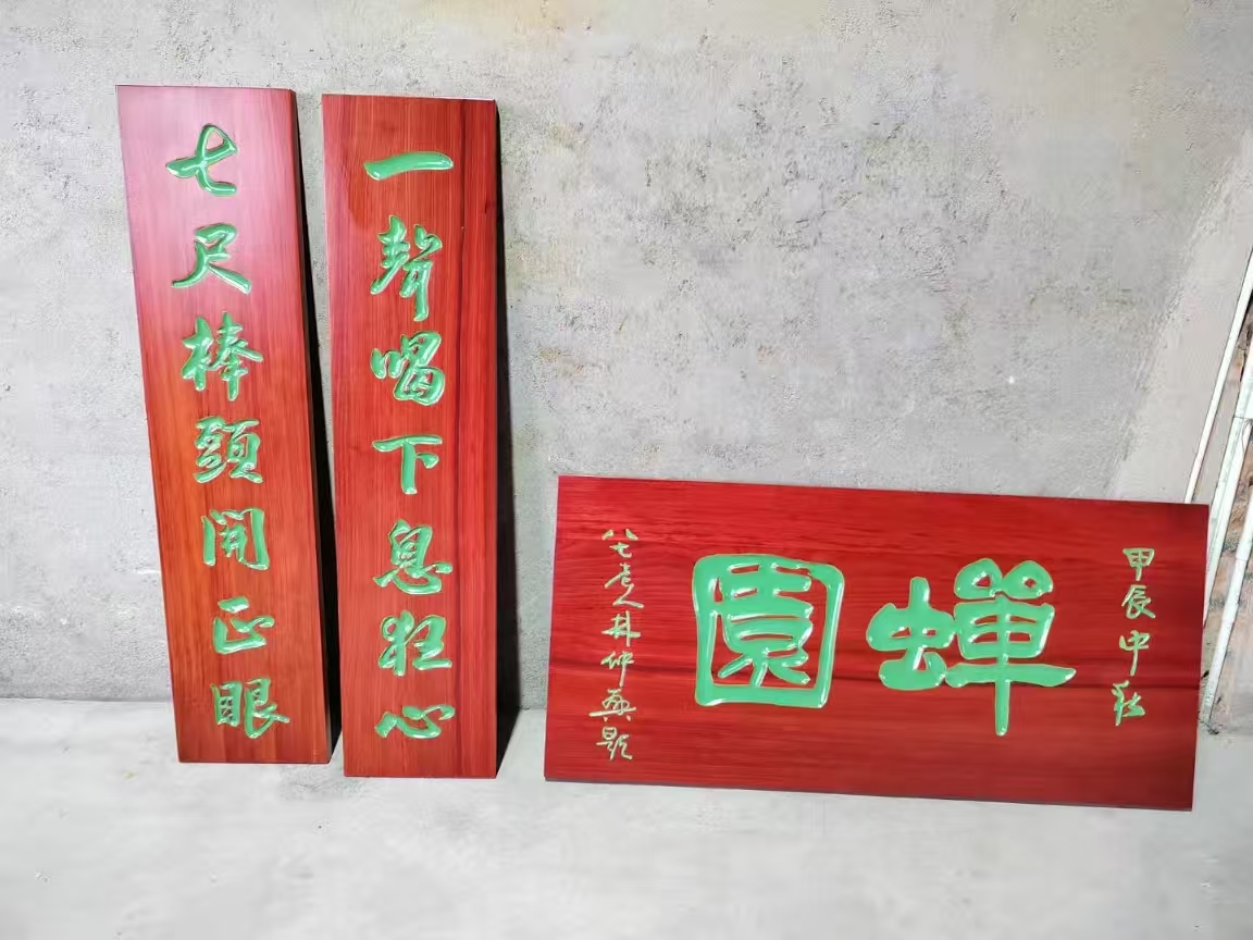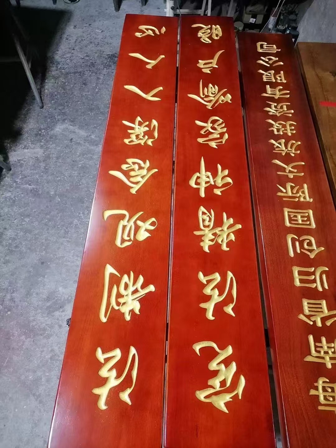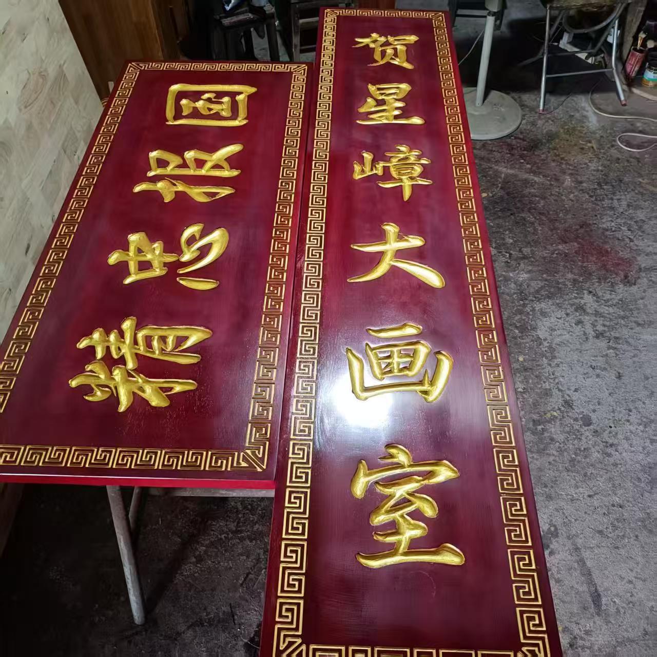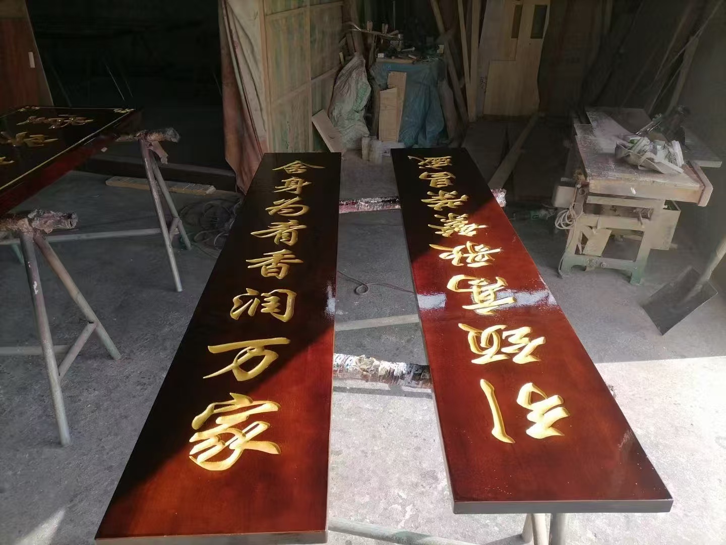 我们选用整块老料实木,材质坚硬耐用,纹理自然大气,不掺假、不拼接,做工扎实。从雕刻、描金、上漆到成品,全是老师傅手工制作,字体苍劲有力,楹联对仗工整,端庄大气,一挂上去,祠堂立马庄严气派,尽显宗族底蕴。