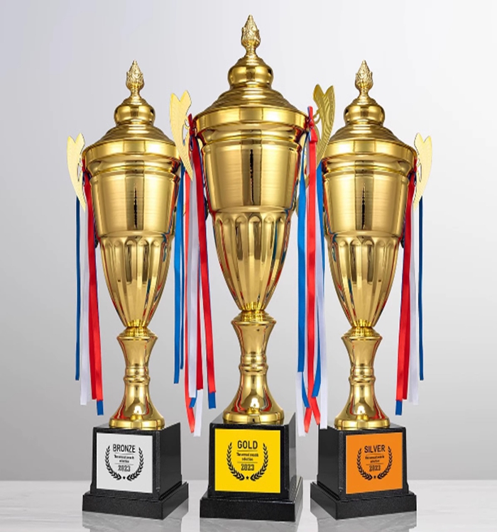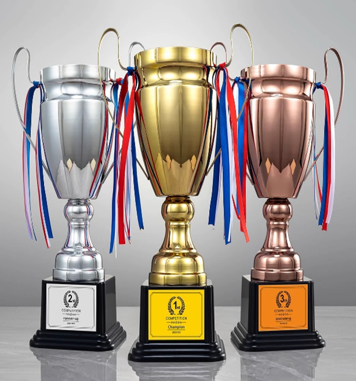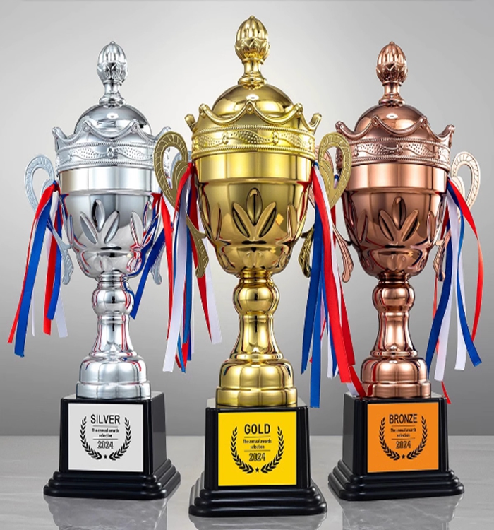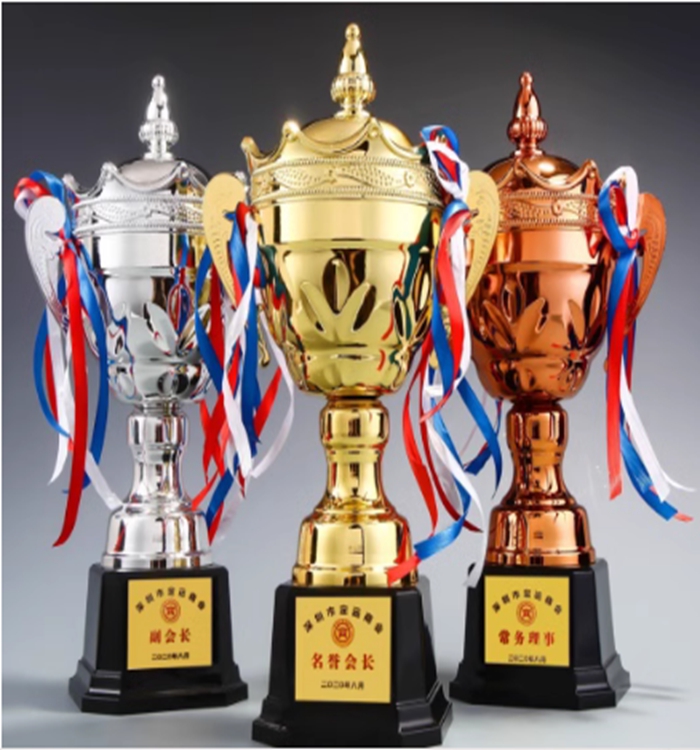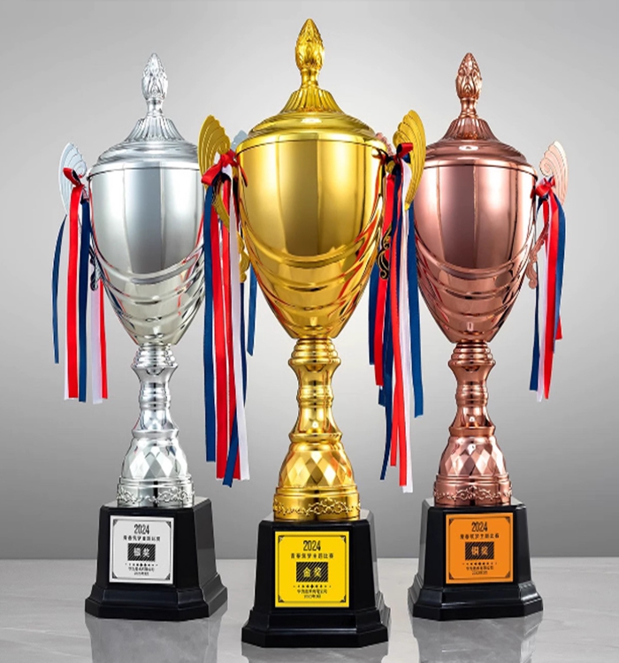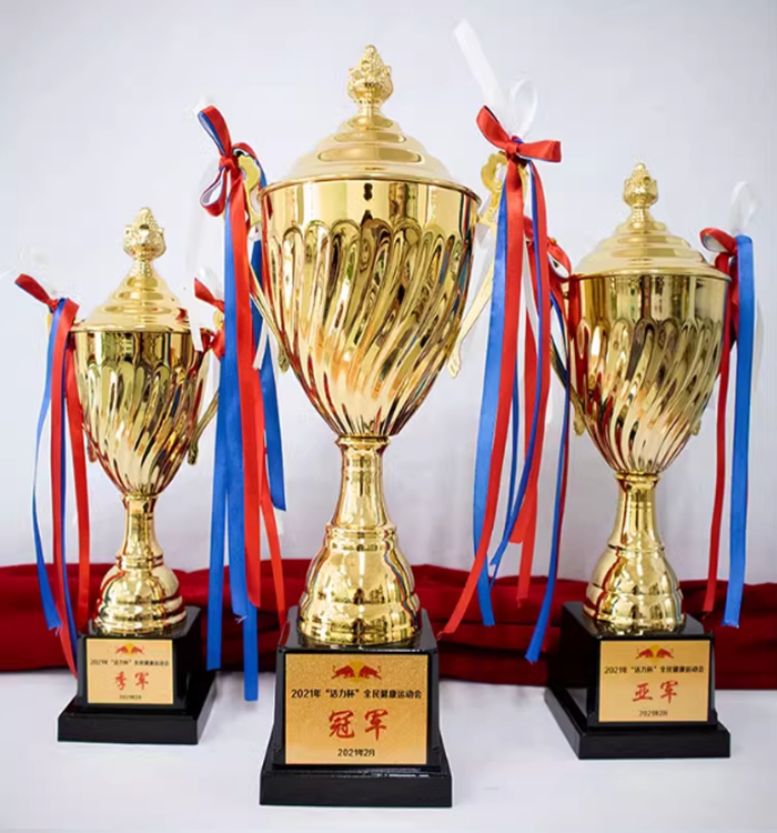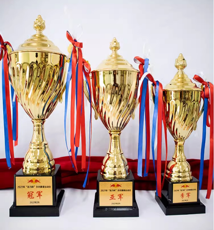 奖杯结构:足球奖杯常用“球形顶+立柱”,篮球可选“奖牌+底座”,乒乓球适合小巧杯型。