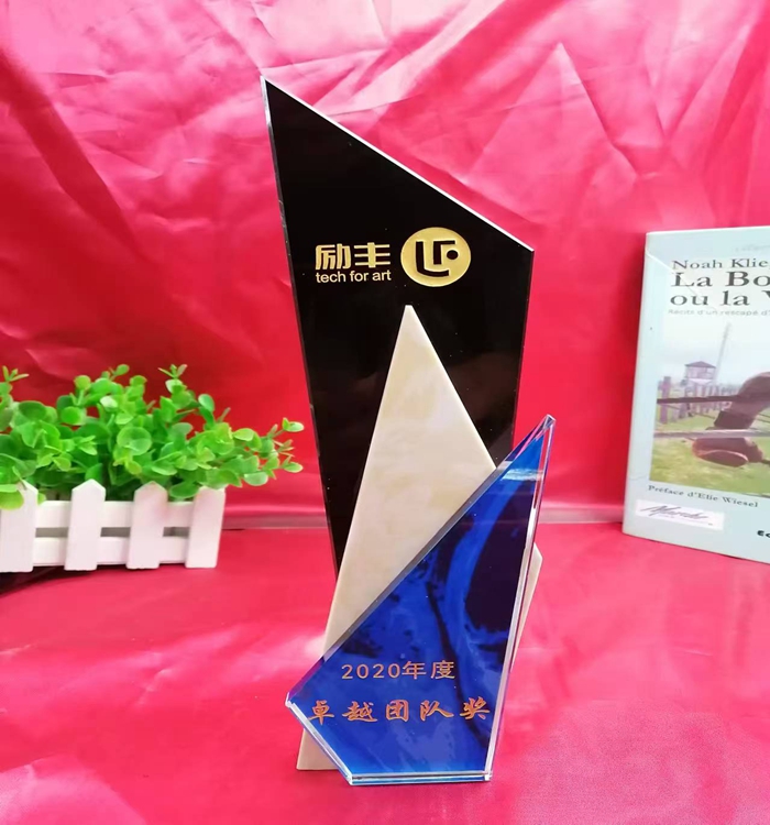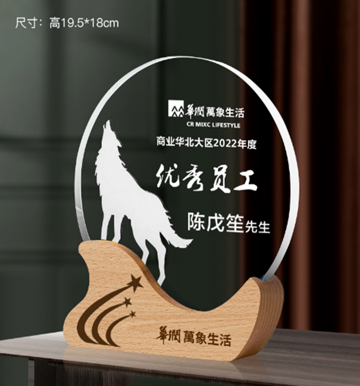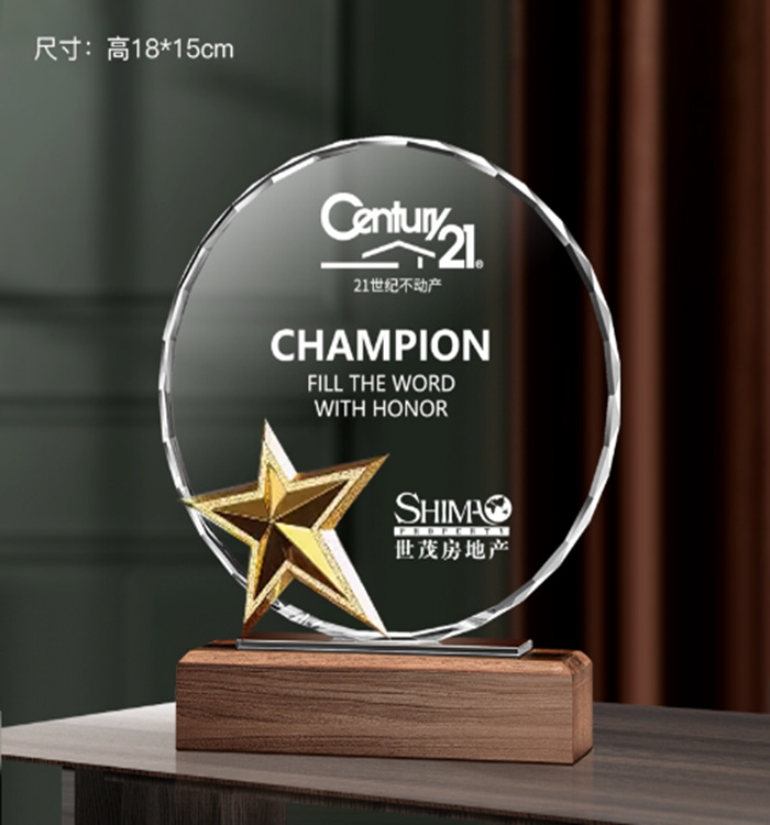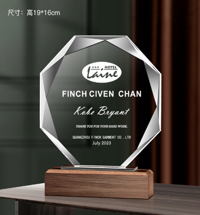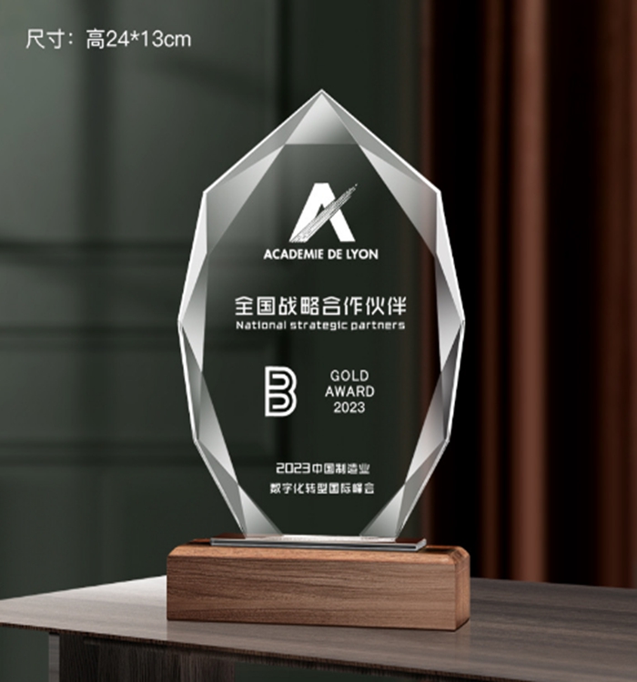 针对企业年会员工表彰的实木水晶奖杯定制需求,以下是一份详细的解决方案,涵盖创意设计、材质选择、定制流程及实用建议: