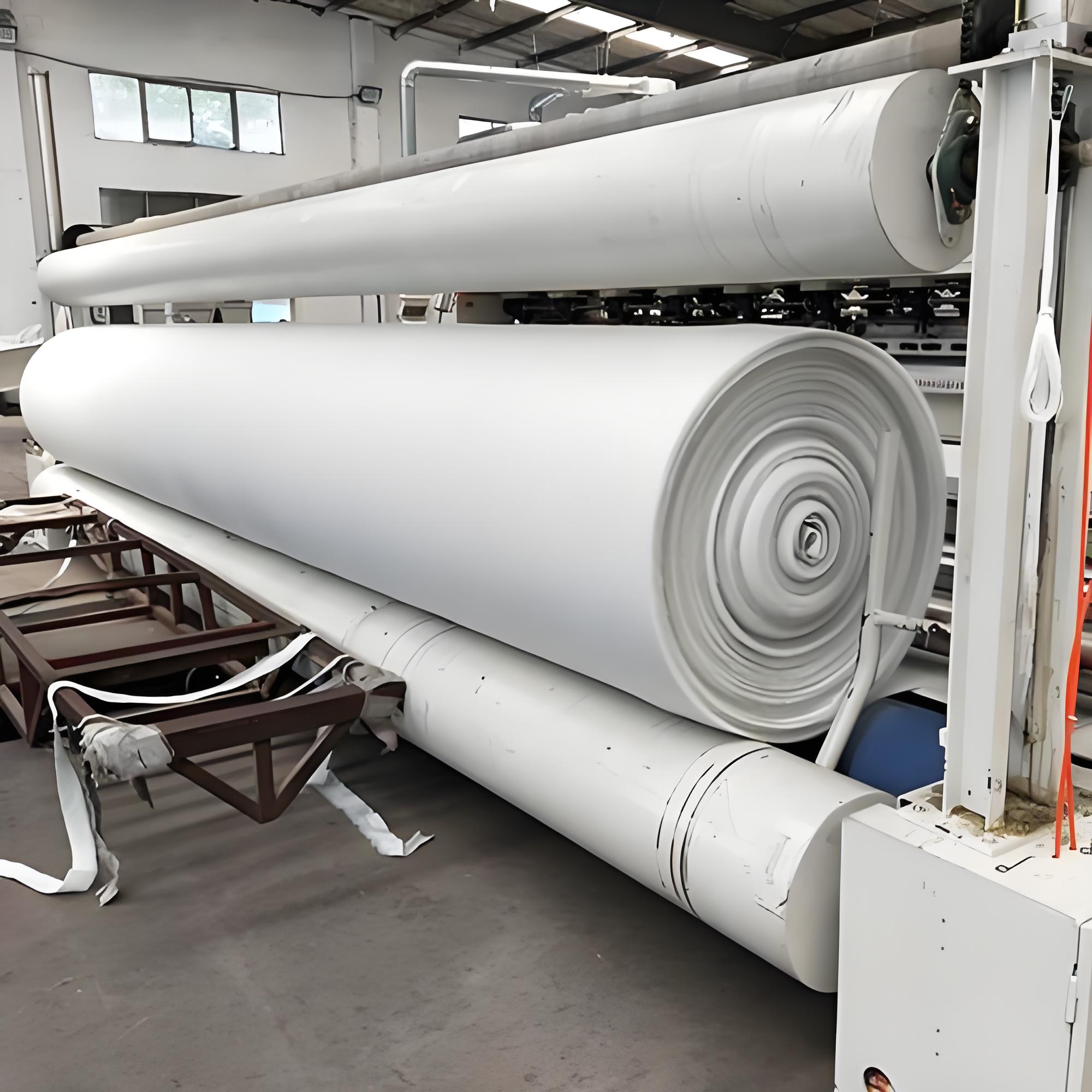 我公司专为济宁客户定制的,两边白色土工布为200克,中间为1mm黑色土工膜,总规格 为1400克。