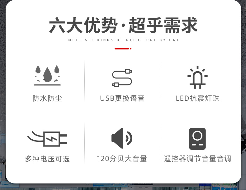 YS-800户外IP65防水学校工地安全语音提示声光报警器喇叭220V380V