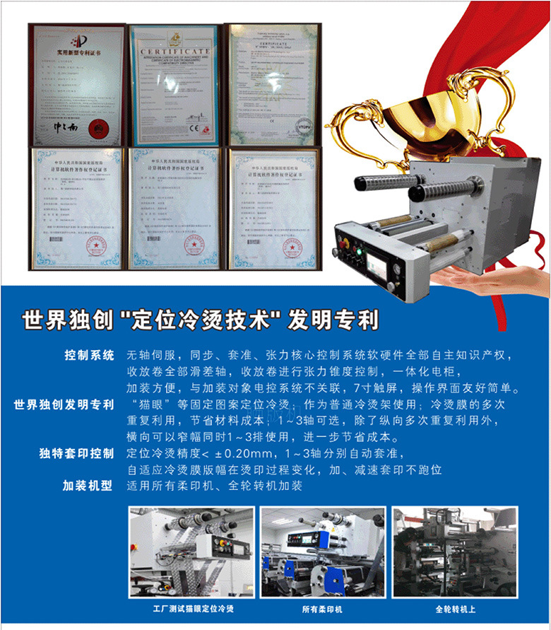 3.前中后冷烫,定位烫,局部烫,可同步完成,且烫金效果好,速度快