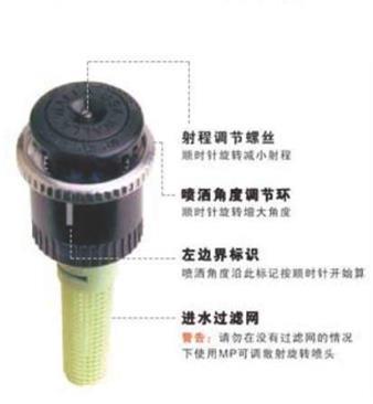 MP3000为散射旋转射线喷头,角度可调节装置可以在复杂地块进行灌溉。