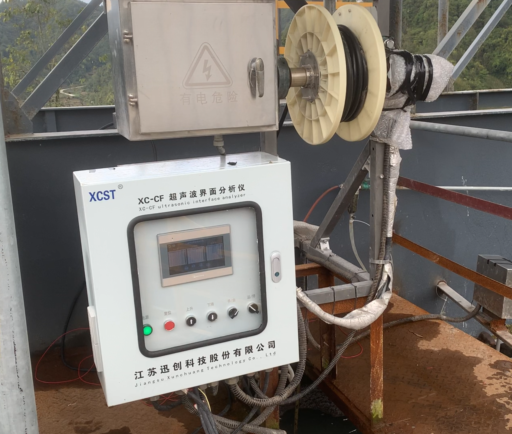 XC-CF超声波界面分析仪是江苏迅创科技股份有限公司自主研制的国内测量浆液界面的分析仪表,仪表由测量模块、传动模块、显示模块、控制模块和清洗模块等组成,用于金属选矿浓密池、选煤浓缩池、化工晶浆过程罐和其它浆液储罐等工矿的分层界面测量和分析。