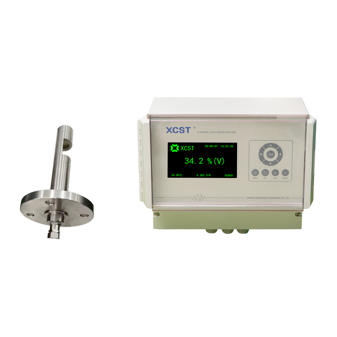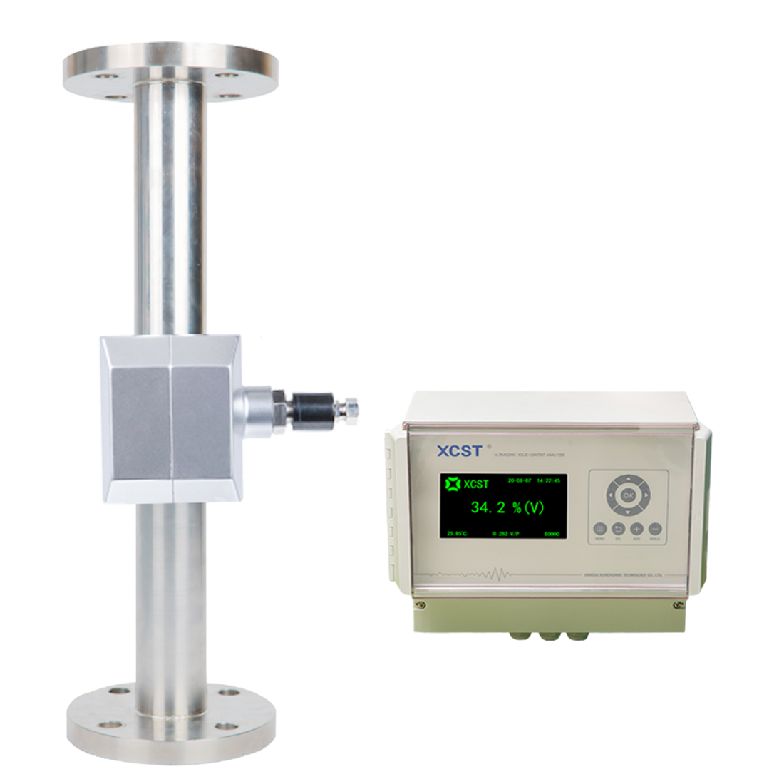 XC-CA超声波固含量检测仪是江苏迅创科技股份有限公司自主研发的高科技产品,利用超声波检测原理,辅以电子技术和独特算法,功能齐全,用于研磨类研磨料、工业结晶晶浆、泥沙及各种工业浆料测量固液两相浆液的固体含量在线检测。
