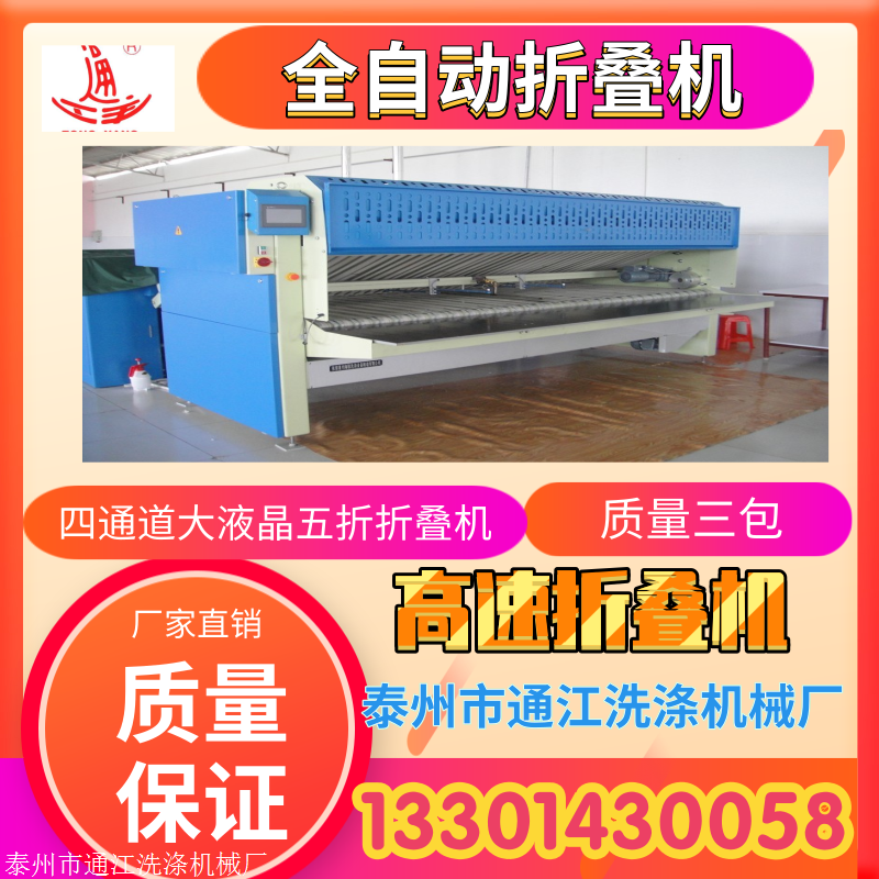 折叠机厂家选择通江洗涤机械,床单折叠机品牌:通洋牌,全新5折,折叠宽度3300mm,全自动型,双通道,四通道可以选择。