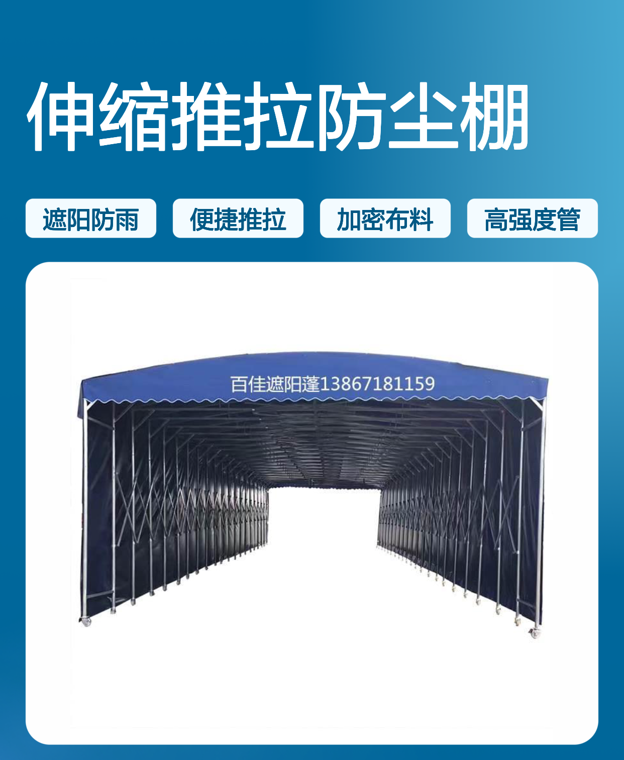 活动推拉棚 伸缩防尘 便捷实用 加密加厚 高强度管