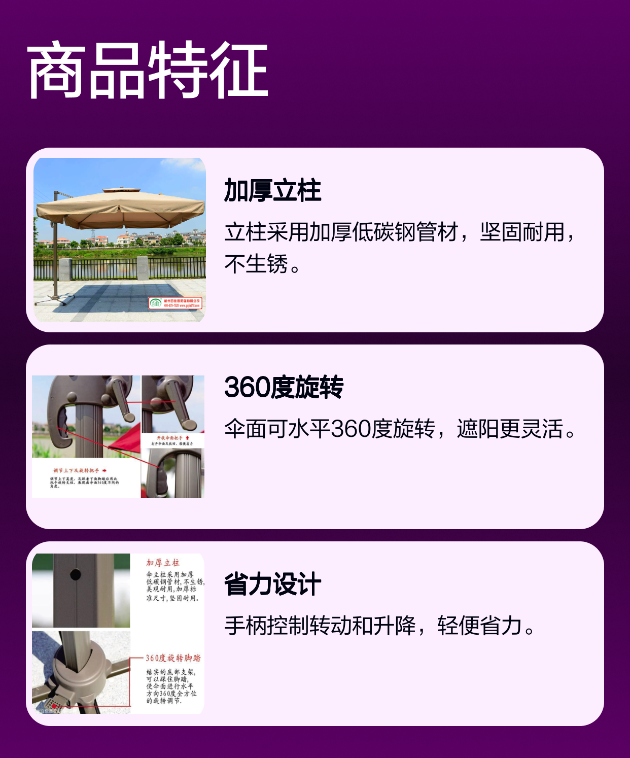 遮阳伞 庭院定制 罗马伞加厚立柱 款式齐全 造型独特