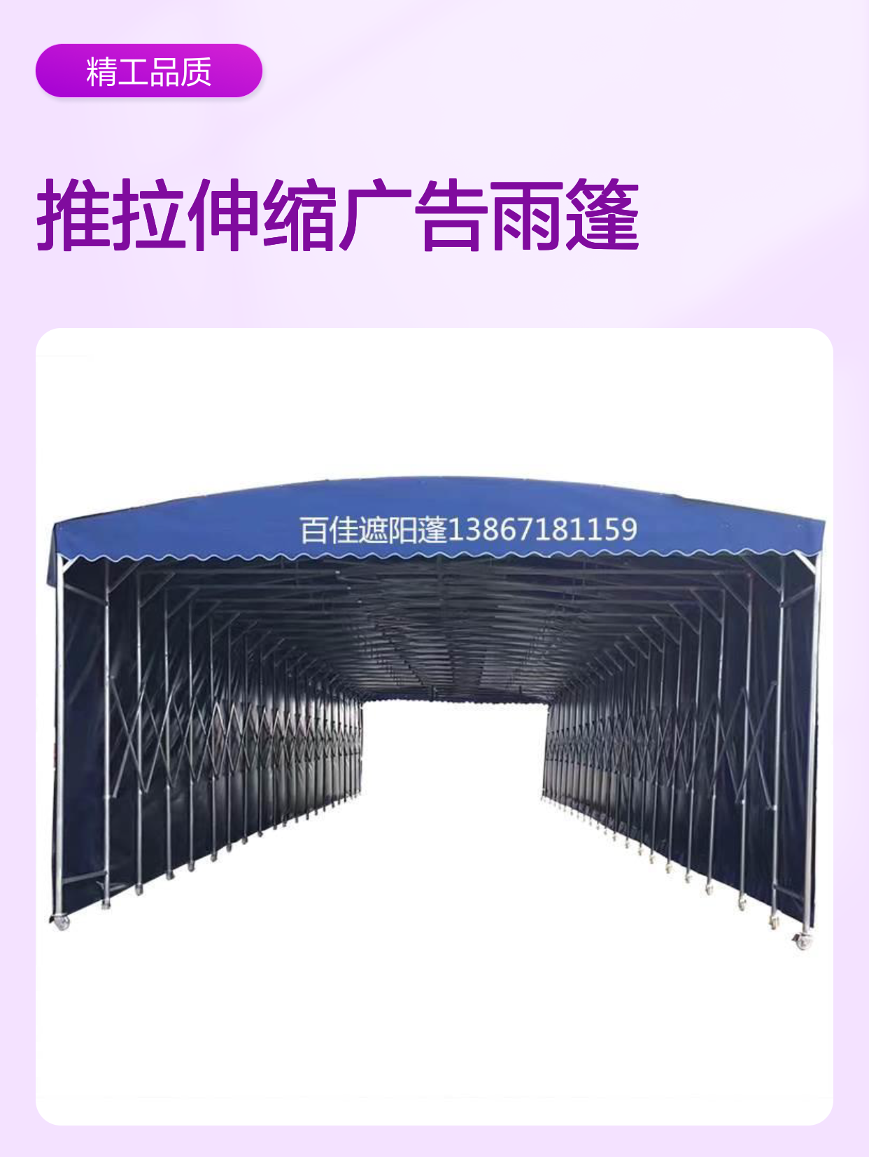 推拉伸缩广告雨篷 定制加厚镀锌管 迁移方便 经济实用