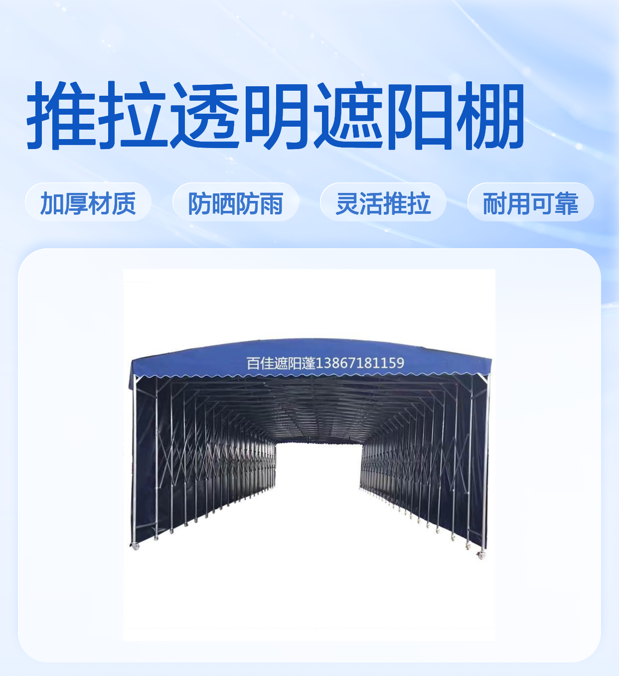 电动推拉棚 透明遮阳防晒 加厚镀锌 结实耐用 轻巧省力