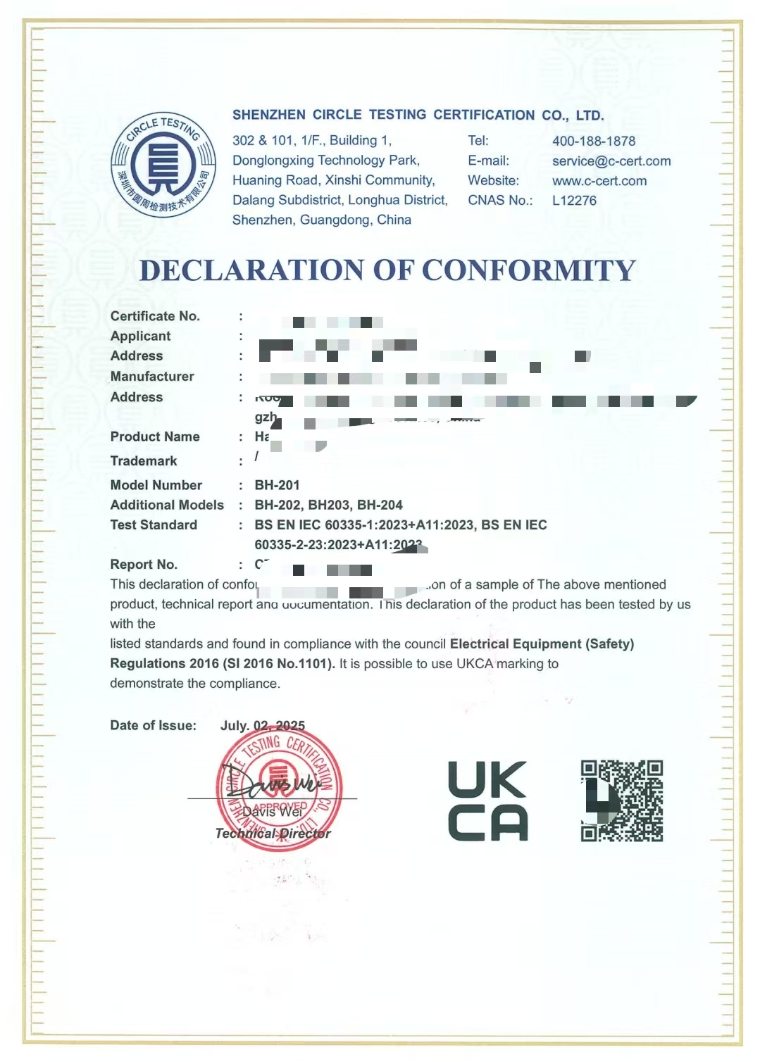 有效期:无固定期限,但若产品设计或法规变化需重新认证。