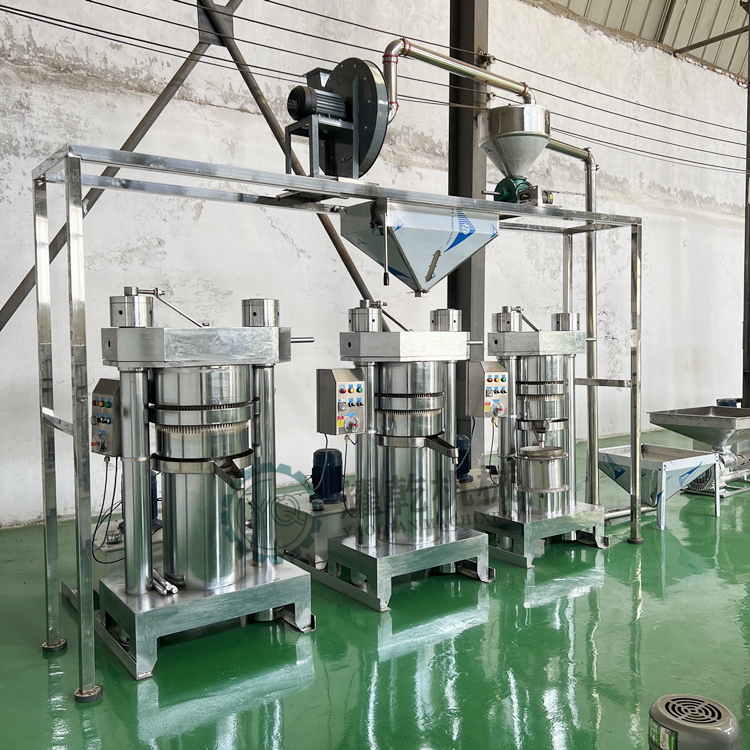 芝麻香油机 榨油坊芝麻榨油设备 60mpa大压力液压榨油机厂家设计科学、结构合理、操作简便、安全稳定,采用全自动化装置,从投料到成品一次完成仅需几分钟。 材质优良 工艺好 :采用高碳钢,经高频淬火、耐热处理而成,硬度高,强度大,磨性好,适应高温高压连续作业,提高了榨油机的使用寿命,使用时间可达几十年之久。 榨膛合理 出油高:采用多级推进渐进加压的原理,使榨膛压力增大,使油料裂变分离,再采用红外线温控系统,自动控制压榨温度和水份,使油料直接软化油脂分子,压榨稳定,一遍榨尽,大大提高了出油率。