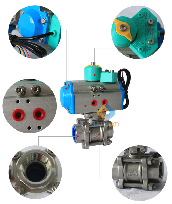 气动三片式不锈钢螺纹球阀产品特点:1. 流体阻力小,其阻力系数与同长度的管段相等。